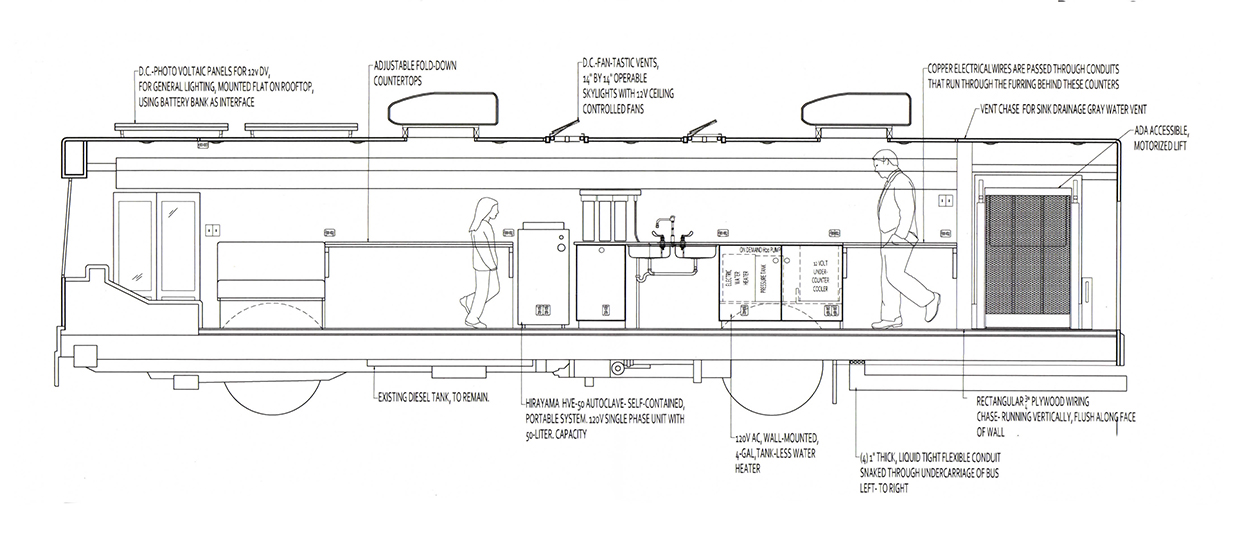 Dr. Martin Motes, client of the first Design/Build project and long-time affiliate of Fairchild Tropical Botanic Garden advised on the project. In addition to fully outfitting the bus as a mobile lab, all of the equipment removed from the bus during the renovation was repurposed or recycled. The result of this coordinated construction of cabinetry, carpentry and complex systems has set in motion partnerships with over 30 Miami-Dade Schools to grow one million orchids.